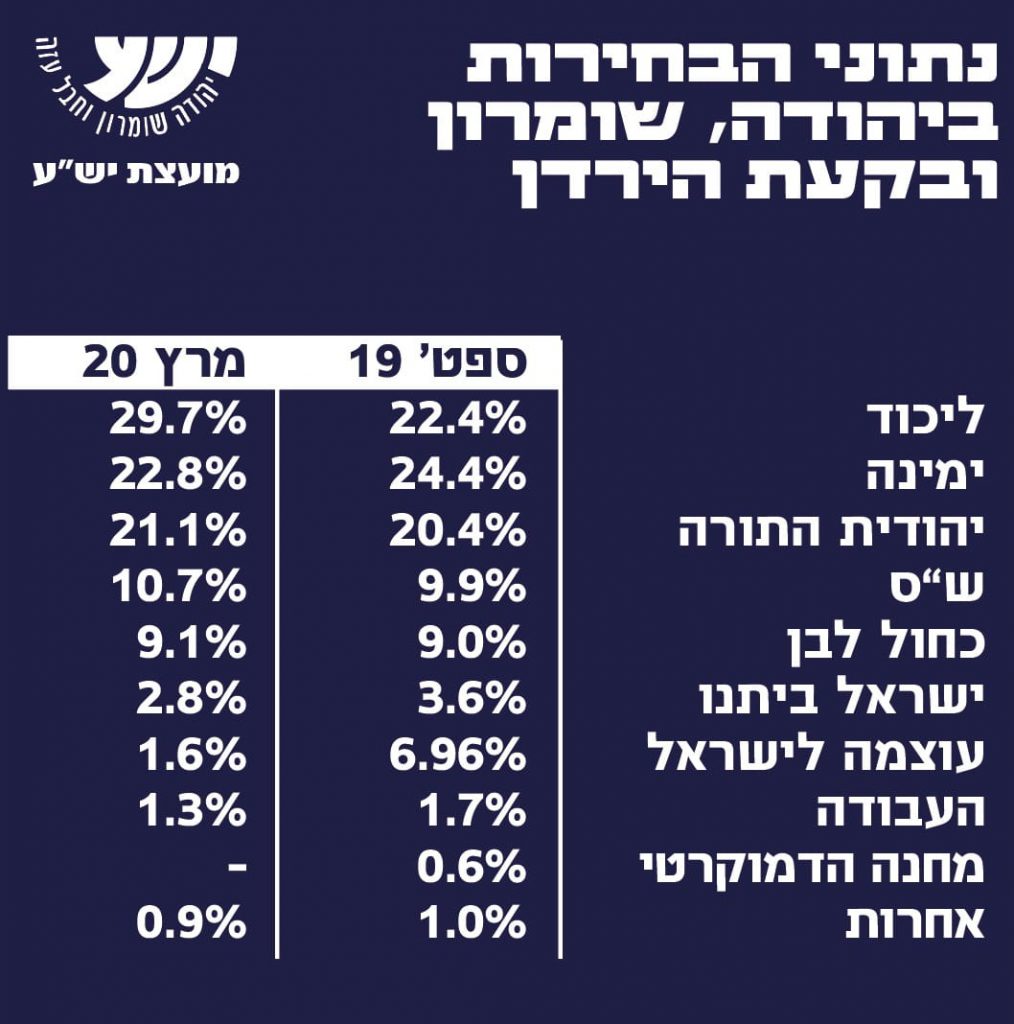 לאחר פרסום התוצאות של ועדת הבחירות לכנסת ה-23, ולאחר בחינת הנתונים ועיבודם על ידי מועצת יש”ע, אנו מפרסמים את התוצאות בקלפיות שביישובי יהודה, שומרון ובקעת הירדן. בבחירות אלו עלה נושא הריבונות על הפרק וקולם של התושבים ביהודה ושומרון חשוב מאי פעם.